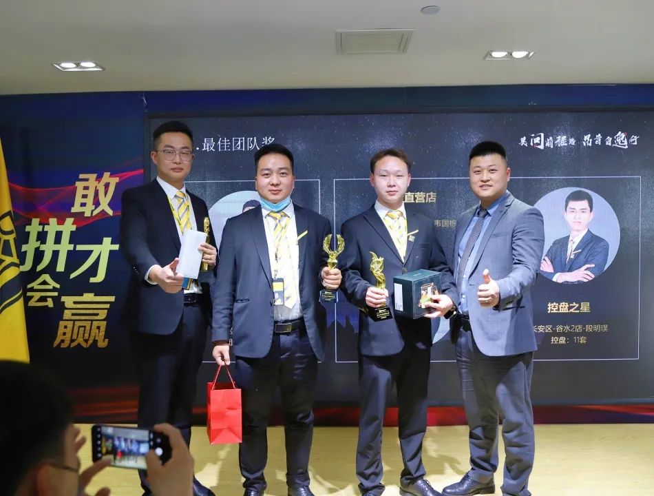從左至右依次是:泉舜區(qū)-區(qū)域總監(jiān)-李伊波、隋唐區(qū)-區(qū)域總監(jiān)-牛志龍、第七戰(zhàn)區(qū)-營銷總監(jiān)-胡展飛、帝都區(qū)-區(qū)域總監(jiān)-龐小亮